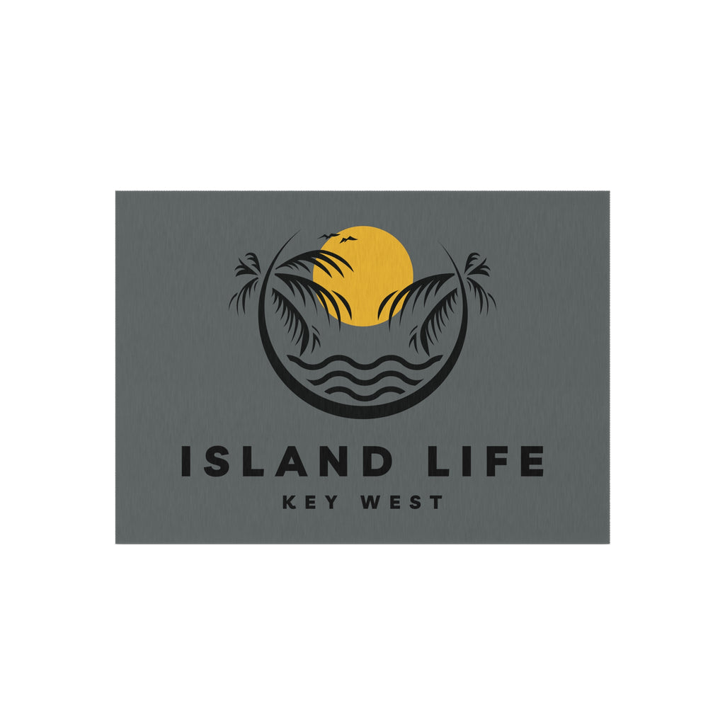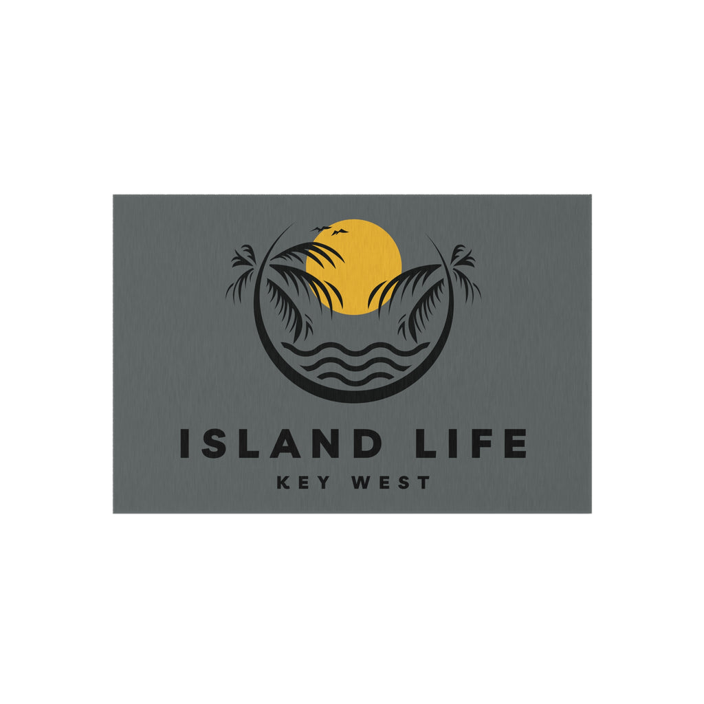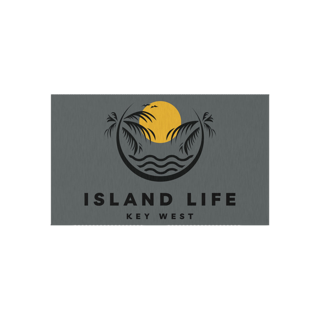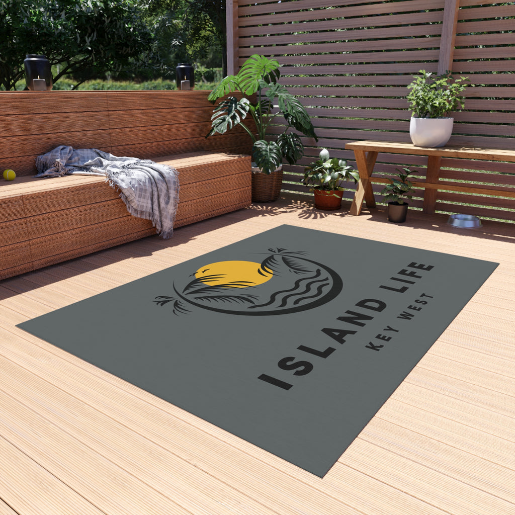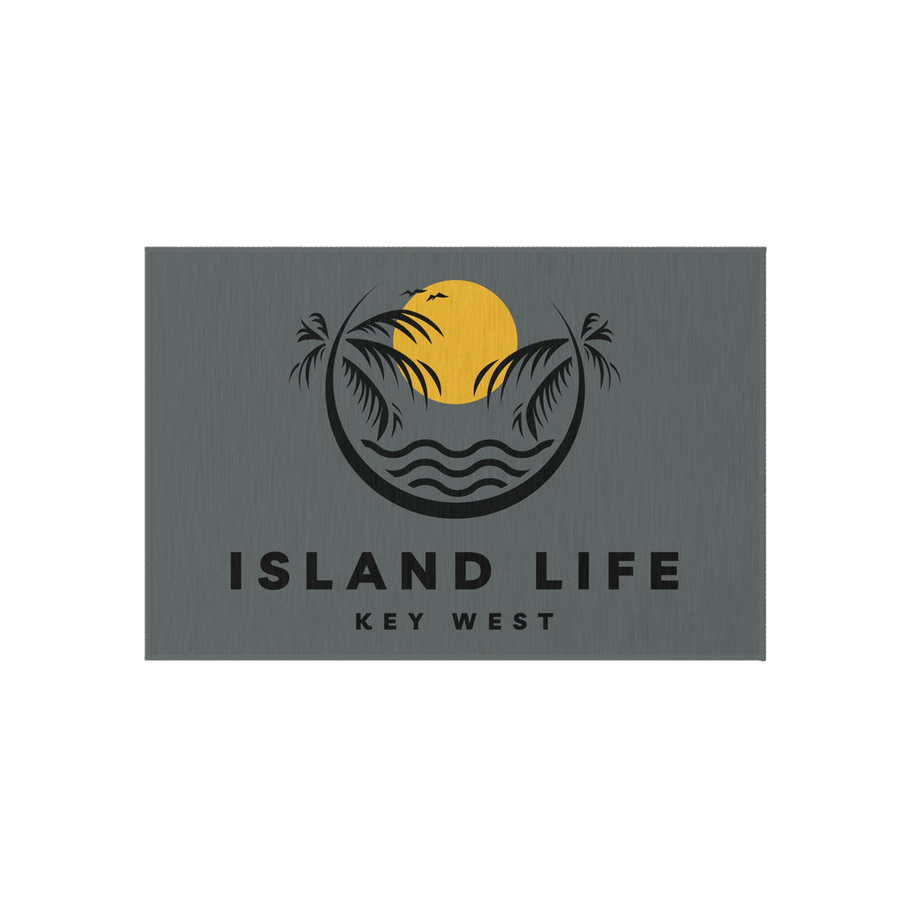 Welcome guests into your home with this custom Key West outdoor rug. Here to add a taste of the Key West to any home for a long time to come, these rugs come in many different sizes to fit any patio or porch. Made from polyester chenille fabric— they're very durable, breathable, and dry quickly.kly.